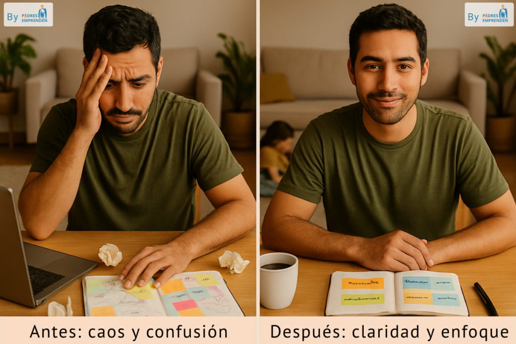 Lo que más desgasta no es la falta de tiempo, sino la falta de un rumbo claro. La mente de un padre o madre emprendedor(a) ya está llena de decisiones diarias: comida, tareas, horarios, emociones, pendientes…